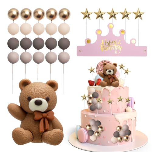 KQDRAVINE 27 stycken nallebjörn tårtdekoration, rosa, födelsedag, dop pojke, inte ätbara