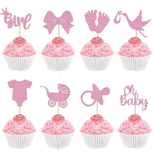 Neodtx Flicka Cupcake Toppers Baby 32 Stücken Babyparty Tårtdekoration Muffins Dekoration Pojke Eller Gömma Reveal Party Dop Dekoration