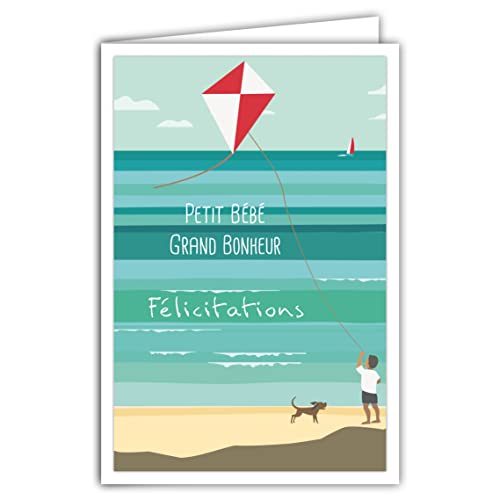 Afie 69-4336 Gratulationskort liten bebis stor lycka med kuvert för födelse dop adoption födelsedag pojke hjort-flygande hund vintage retro - affisch storlek 17 x 11,5 cm