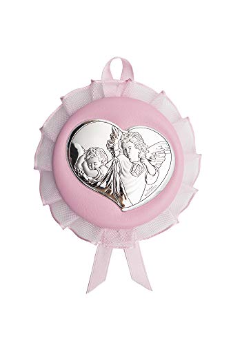 Valenti&Co musikmedaljong med ängel, silver, perfekt som present för födelse eller dop, för att hänga på barnvagn, barnvagnen eller babyrum
