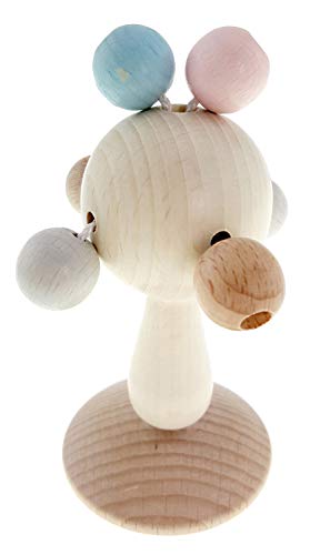 Hess Holzspielzeug 10128442 skallra av trä, i sfärisk form, från 3 månader, ca 6 x 6 x 6 cm, present för födelse eller dop, flerfärgad, 50 g