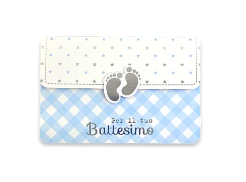 HBGFTBqcb CREATIVE GRAFISKA OFFICINE LINA, Bimbo dopbiljett, för present till gudfaderns dop, penningkuvert ingår, Magnet stängning, 11,50 x 16,50 cm, blå schack