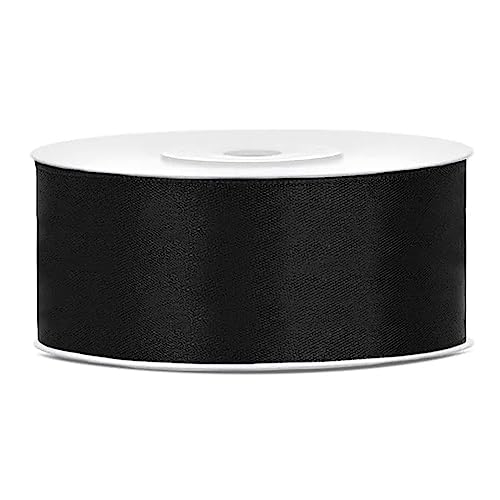 25mm svart dubbelsatinband, band för bröllop dop jul nyår present present till favör rulle rulle tjock 25 meter