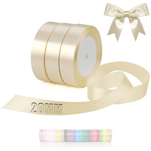 TXXATX 66 m band beige satinband dekoration presentband bred 20 mm presentband beige band bröllop tyg present band för dop födelsedag presentpapper julbordsdekoration