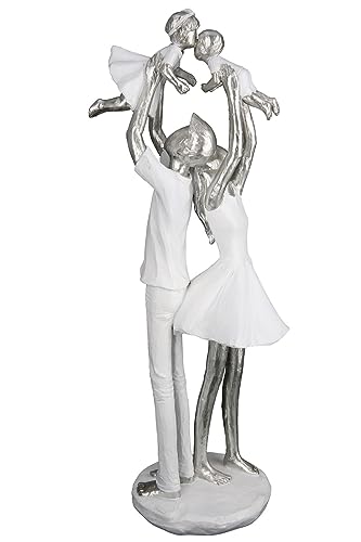 Casablanca dekorationsfigur skulptur familjetid – gjord av konstharts – present födelse dop – färg: vitt silver – höjd 37 cm