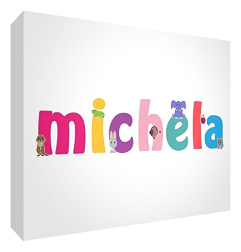 Little Helper LHV-MICHELA-A7BLK-15IT Dekorativ panel Spädbarn/dop Present, Anpassningsbar design med flicknamn Michela, Multifärg, 7.4 x 10.5 x 2 cm