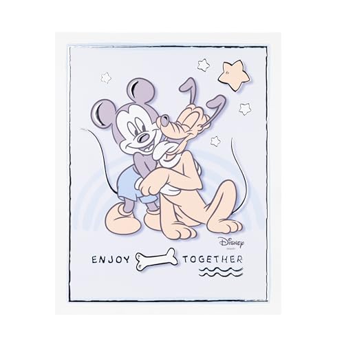 VALENTI & CO. - Disney Musse Pigg - tryckt trämålning 20 x 25 cm med silverdetaljer - väggdekorationer, presentidé för nyfödda eller dopgåva för barnrum