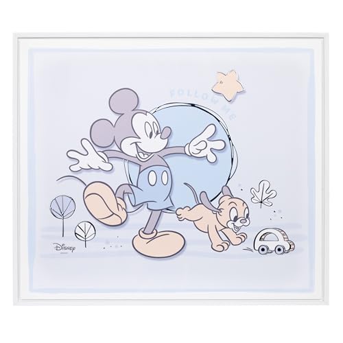 VALENTI & CO. - Disney Musse Pigg - tryckt trämålning 45x39 cm med silverdetaljer - väggdekorationer, presentidé för nyfödda eller dopgåva för barnrum