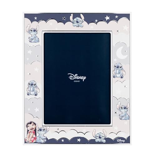 VALENTI & CO. - Disney Lilo och Stitch - Träram 13 x 18 cm - Bordsfotoram med silverdetaljer - Presentidé till bebis eller dopgåva - fotoram för barnrum