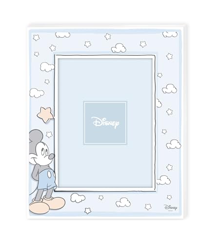 VALENTI & CO. - Disney Musse Pigg - Träram 13 x 18 cm - Bordsfotoram med silverdetaljer - Presentidé till bebis eller dopgåva - fotoram för barnrum