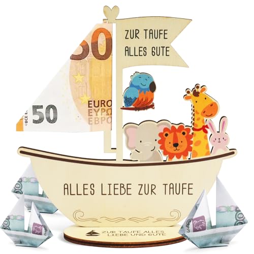 Aolso Doppresenter till pojkar och flickor, gåvor för dop, träbåt med bas, personlig present, dop, present, dopgåva, baby (gul)