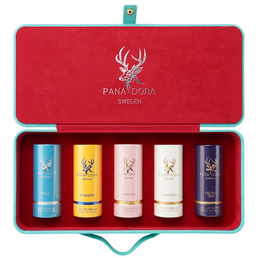 Pana-Dora-Sweden Unisexdofter SkadiTurkosReseset Eau de Parfum Skadi 15 ml + Eau de Parfum Scandic 15 ml + Eau de Parfum Emanuele 15 ml + Eau de Parfum Dorasima 15 ml + Eau de Parfum Velvet Iris 15 ml 15 ml (44.507,00 kr / 1 l)