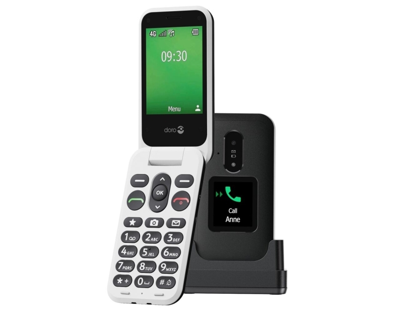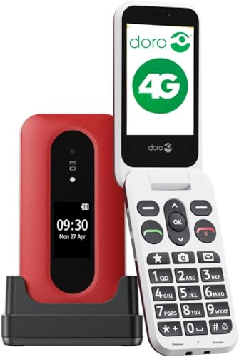 Doro - Leva L30 - Téléphone Portable Senior - Téléphone À Clapet 4G Débloqué - Écran Externe - Son HD - Appareil Photo -Touche d'Assistance avec GPS - Socle Chargeur Inclus - Rouge/Blanc
