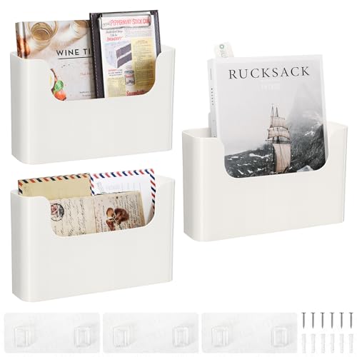 FKTXCO Väggmonterad filorganiseringshållare hängande filorganiserare dörr kontor brevtillbehör förvaring tidning kuvert planerare vägg enkel ficka (benvit, 2-pack)