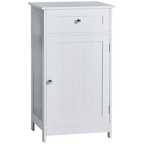 GIANTEX Badrumsförvaring, stående skåp med låda och dörr och justerbar hylla 3 positioner, organisatör för förvaring av garderober för toalett vardagsrum, sovrum, 43 x 34 x 77 cm, vit