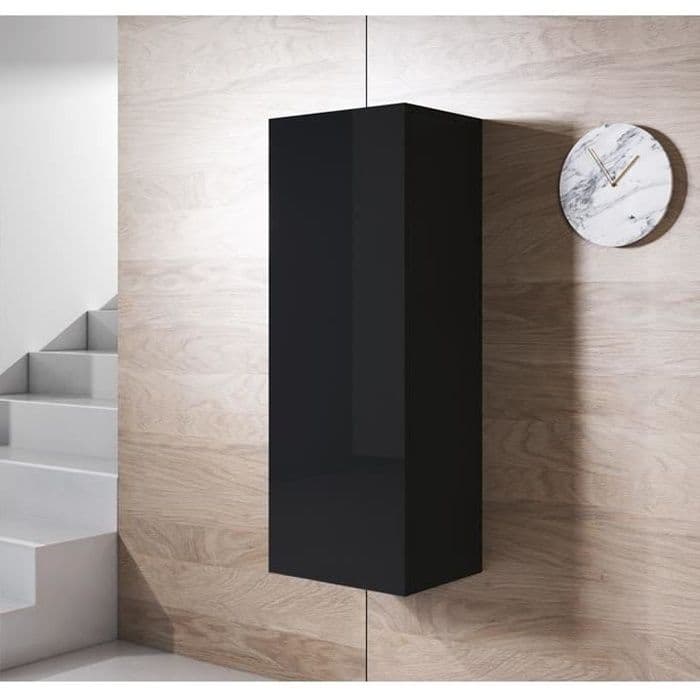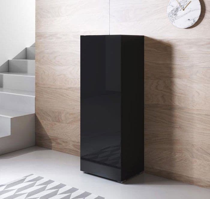 Vertikal skåp | 40 x 128 x 29 cm | Svart blank finish | 1 dörr 3 fack | Förvaring | LUKE V1