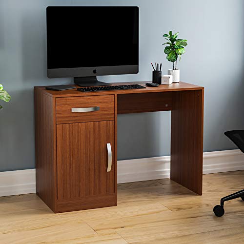 Vida Designs Hudson datorskrivbord med låda och dörr, hemmakontor PC/laptopbord, spelstudier arbetsstation förvaring skåp möbler, valnöt