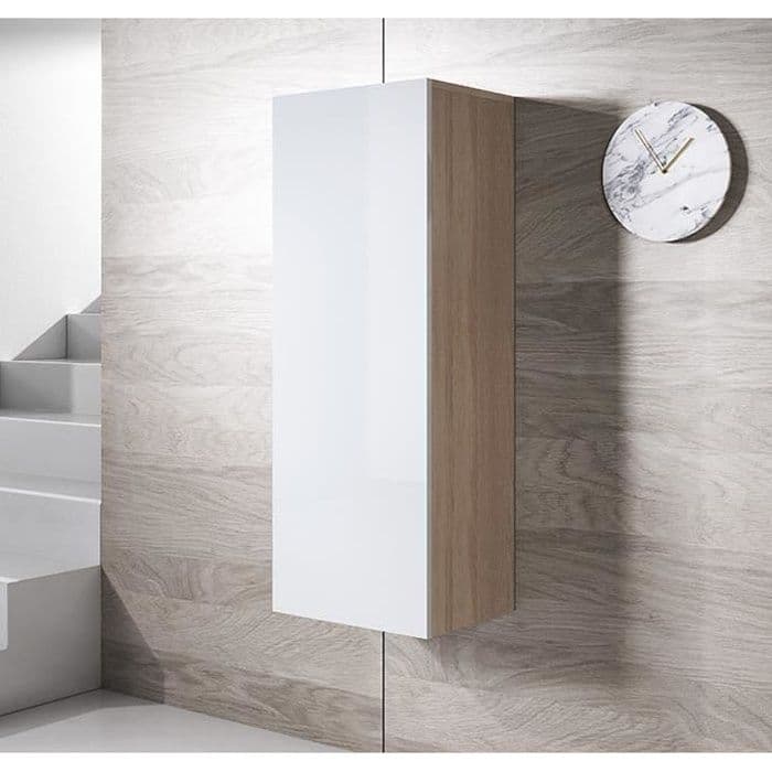Vertikal Skåp | 40 x 126 x 29 cm | Sonoma och Vit Blank Yta | 1 dörr 3 fack | Förvaring | LUKE V1
