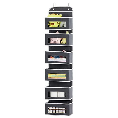 YOUDENOVA Förvaring över dörr med 6 genomskinliga fönsterfickor, hängande förvaring med stålkrokar, garderobsorganiserare för leksak barnkammare kök sovrum badrum grå (YDHC009)