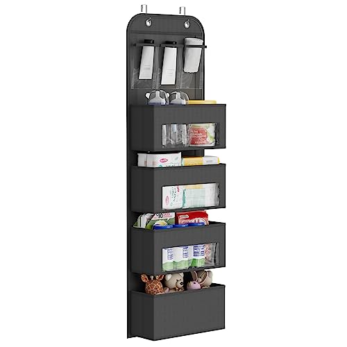 YOUDENOVA Förvaring över dörr med 3 genomskinliga fönsterhängande förvaring med stålkrokar, 4 stora fickor, 2 PVC-fickor, hängande förvaringsorganisatör för leksak, barnkammare, sovrum, badrum, kök,