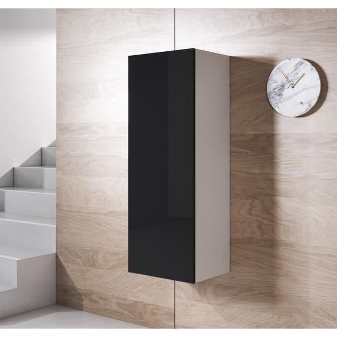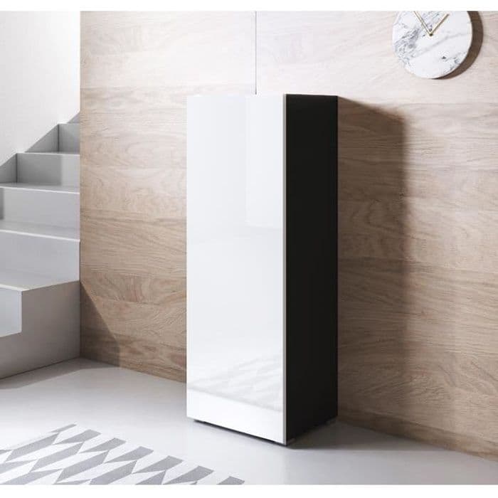 Vertikal Skåp | 40 x 126 x 29 cm | Svart och Vit Glansig Yta | 1 dörr 3 fack | Förvaring | LUKE V1