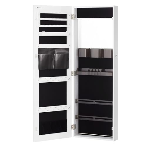 SONGMICS Smyckeskrin, med spegel och lås, dörr- eller väggmonterad organisatör, utan ram i full längd med förvaring, presentidé, molnvit JJC003W01