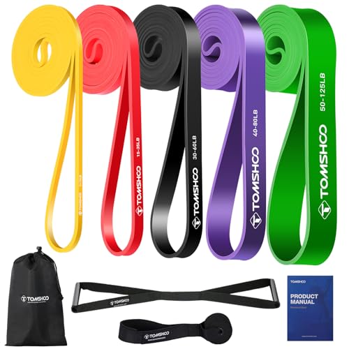 TOMSHOO Motståndsslingband, 5 paket dra upp hjälpband set latex hudvänlig med dubbla handtag och dörrankare, träningsband för styrsel, crossfit, stretching gym yoga styrketräning