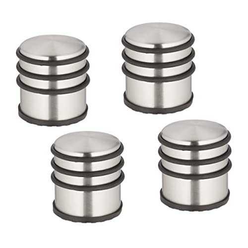 Relaxdays Dörrstopp rostfritt stål, set om 4, H x D: 7,5 x 7 cm, hög och tung, halkfri, dörrbroms, silver/svart