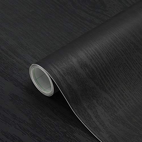 Losu Trä självhäftande film, vattentät 61 x 500 cm, möbelklistermärke, PVC dekorativ film, möbelfolie, dörrfolie för fönsterbräda, väggar, möbler, kök, dörr, svart