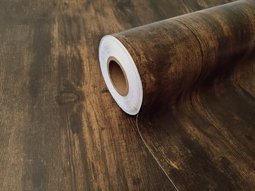 FunStick 60CM × 5M möbelfolie självhäftande träutseende självhäftande folie för möbler köksskåp bänkskiva dörrfolie självhäftande tapet träutseende mörkbrun träfolie självhäftande för möbelbord vägg