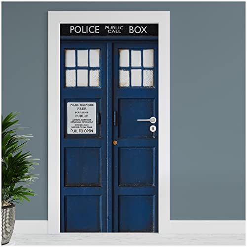 Finest Folia dörrfolie 90 x 200 cm, dörrtapet, dörrposter, folie för dörr, vardagsrum, barnrum, kök, dörrklistermärken, badrum, klistermärken, självhäftande, TF01 (07 polisbox)