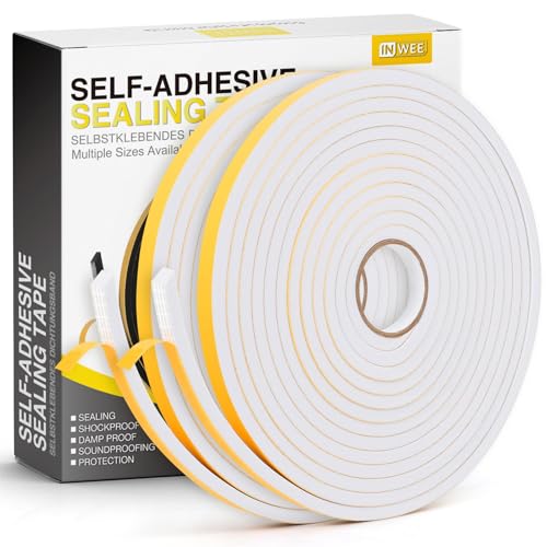 Inwee tätningstejp självhäftande för dörrar fönster, dörrtätning D-profil gummitätning, vattentät dörrfönster dragluftstopp, ljudisolering, dammtät isolering, 9mm x 6mm, totalt 20m (vit)