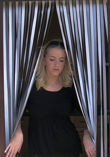 Maximex Dörrgardin gråvit, praktisk randig gardin mot irriterande insekter och nyfikna blickar, inklusive kardborreband, även för garderobsstänger, av polyester, 90 x 200 cm, kan skäras till storlek