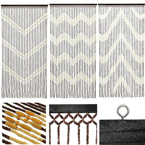 JVL Toscana hängande träpärlor dörrgardin skärm, 90 x 180 cm, bambu, 90 x 180 cm