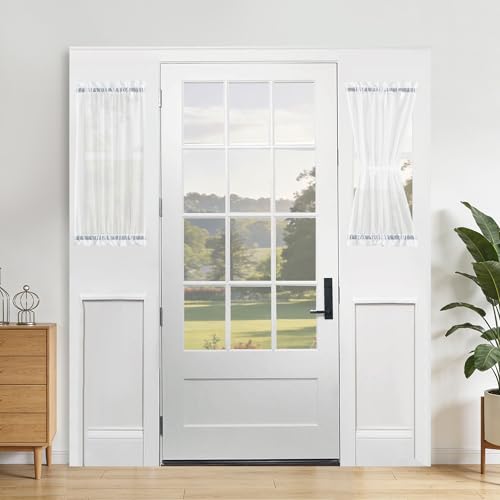 Aquazolax Stångficka tunn ren fransk dörrgardin panel elegant solid voile ren vit draperipanel 63 cm x 102 cm för glasdörr – 1 styck