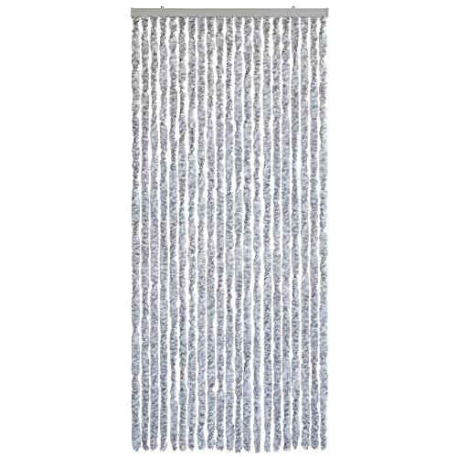 WOHNWOHL Fluffgardin (90 x 200 cm) Husvagn dörrgardin Flugskydd, balkongdörr Insektsskyddsgardin Trådgardin dörr insynsskydd husbil Färg: Grå melerad