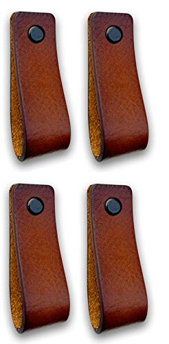 Brute Strength - Läderhandtag för möbler - Cognac - 4 st - 16,5 x 2,5 cm - Skåphandtag, Dörrhandtag för kök, badrum, skåp, byrå, trä