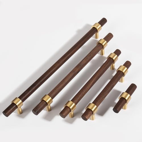 CWYP-40 6 stycken skåphandtag i trä, möbelhandtag massivt trä svart nöt, kökshandtag, skåp, dörrhandtag, garderob, ? draghandtag, dekorativa lådhandtag inklusive skruvar (hålcentrum: 96 mm, träfärg)