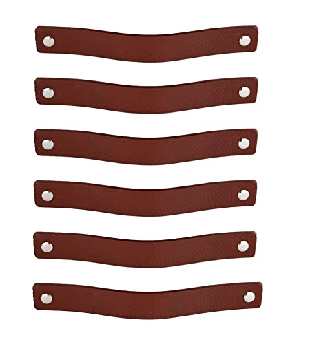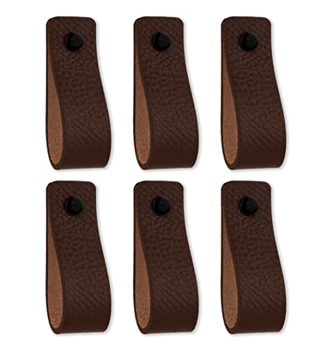 Brute Strength - Läderhandtag för möbler - Brun - 6 st - 16,5 x 2,5 cm - Skåphandtag, Dörrhandtag för kök, badrum, skåp, byrå, trä