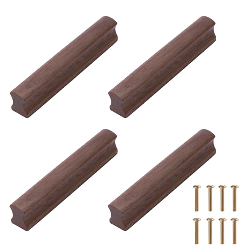 NAKUPENDA 4 stycken skåphandtag trähandtag lådhandtag trä möbelhandtag trädörrhandtag dörrhandtag skåphandtag för dörr skåp låda, 96 mm hålavstånd (svart valnöt)