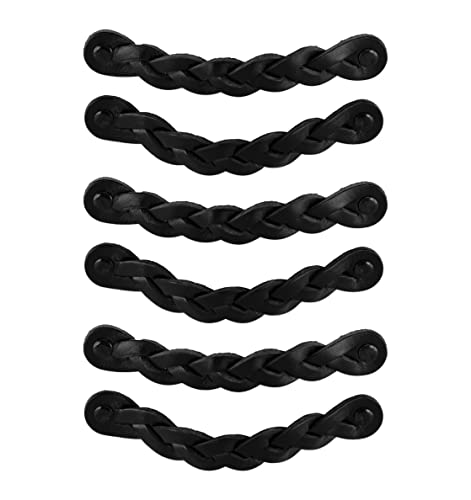 Brute Strength - Läderhandtag för möbler - Flätad - Svart - 12 st - 16,5 x 2,5 cm - Skåphandtag, Dörrhandtag för kök, badrum, skåp, byrå, trä