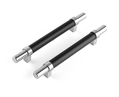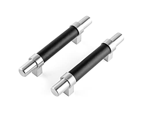 Brute Strength - möbelhandtag - stål och fullnarvläder - 128 mm hålavstånd - silver och svart - 4 stycken - skåphandtag, dörrhandtag för kök, badrum, skåp, byrå, trä
