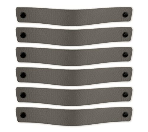 Brute Strength - Läderhandtag för möbler - Grå - 6 st - 20 x 2,5 cm - Skåphandtag, Dörrhandtag för kök, badrum, skåp, byrå, trä