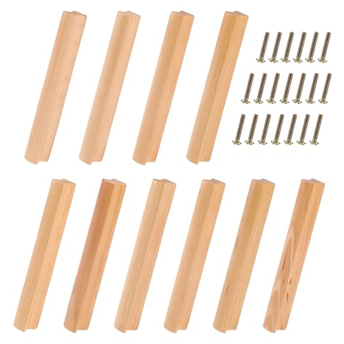 Swawis 10 Stycken Möbelhandtag Trä, 160 mm, Köksskåp Lådhandtag Med Skruvar, Dörrhandtag Randformad För Skåp, Lådor, Möbler, Kök