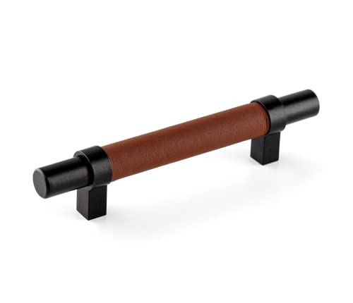 Brute Strength - möbelhandtag - stål och fullnarvläder - 96 mm hålavstånd - svart och brunt - 12 stycken - skåphandtag, dörrhandtag för kök, badrum, skåp, byrå, trä