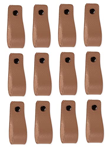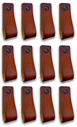 Brute Strength - Läderhandtag för möbler - Brunt - 12 st - 16,5 x 2,5 cm - Skåphandtag, Dörrhandtag för kök, badrum, skåp, byrå, trä