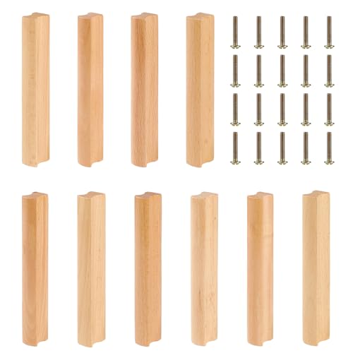 Swawis 10 stycken möbelhandtag trä, 128 mm, trähandtag, köksskåp, lådhandtag, trä med skruvar, dörrhandtag, randformad, skåphandtag, trä för skåp, lådor, möbler, kök