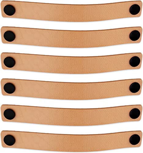 Brute Strength - Läderhandtag för möbler - Cognac - 6 st - 20 x 2,5 cm - Skåphandtag, Dörrhandtag för kök, badrum, skåp, byrå, trä