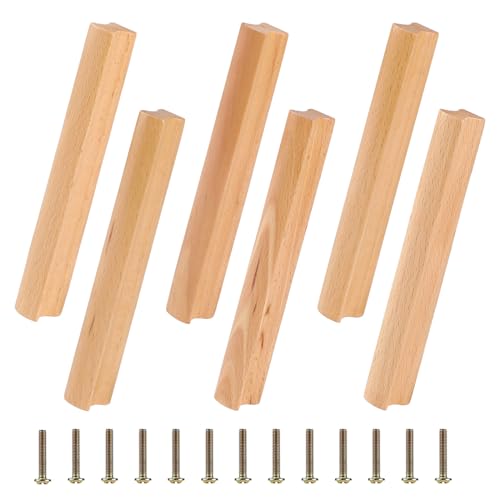 Paket med 6 Möbelhandtag i Trä, Handtag i Träskåp Med Skruvar, Hålavstånd 128 mm, Möbelhandtag i Massivt trä, Universalhandtag i Trä, Kökshandtag, Dörrhandtag, Lådhandtag för Skåp, Kontor Och Kök