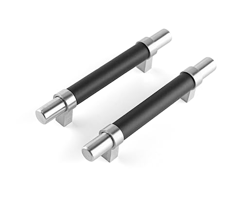 Brute Strength – möbelhandtag – stål och fullnarvläder – 76 mm hålavstånd – silver och svart – 12 stycken – skåphandtag, dörrhandtag för kök, badrum, skåp, byrå, trä